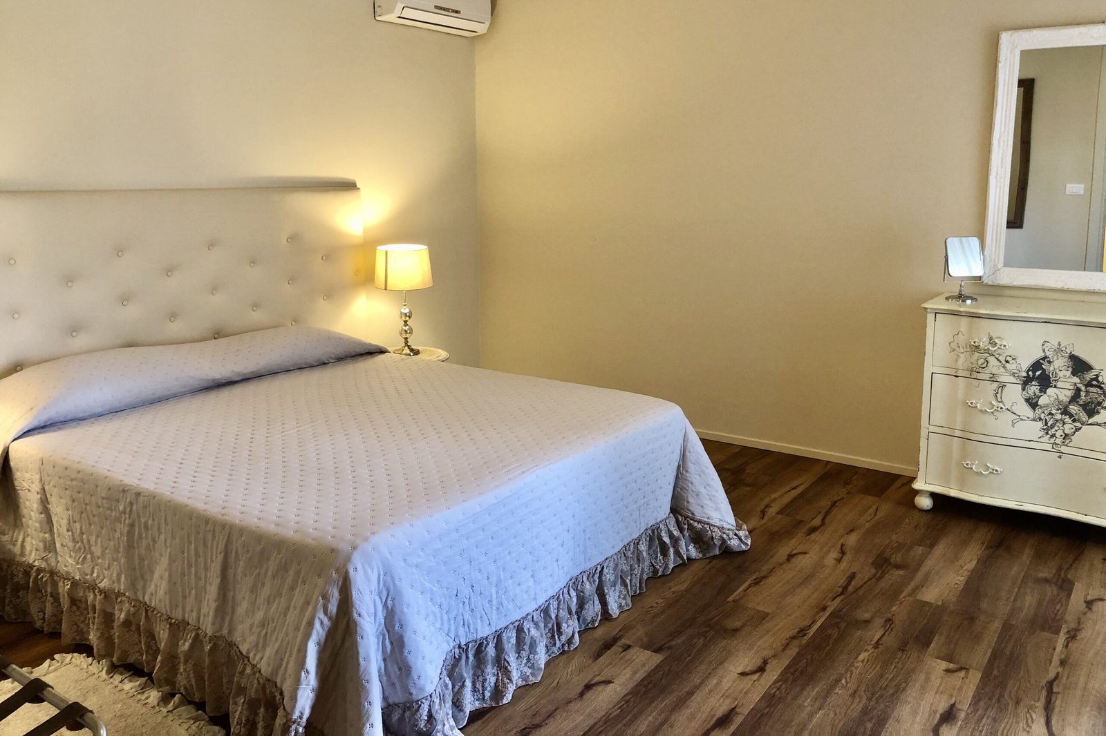 Die Unterkunft Futures 2 Doppelzimmer 1 mit Zustellbett und kann untergebracht werden 5 Personen Personen +1 Kind in den vorhandenen Betten,  Die Badezimmer verfügen über Dusche, Bidet, Klimaanlage, voll ausgestattete Küchenzeile, Kühlschrank, Kaffeemaschine, Kochfeld, Wasserkocher, TV, Mikrowelle, Waschmaschine, Bügeleisen/-brett.